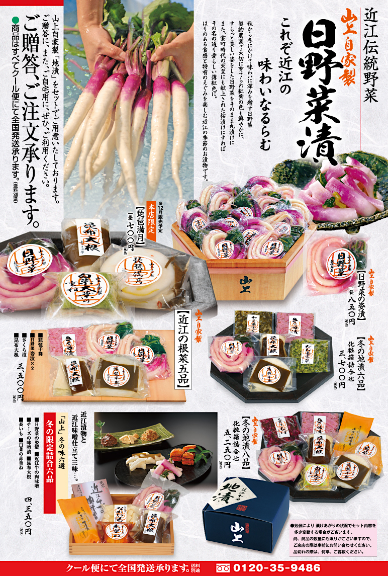 近江伝統野菜であり山上の冬の代表商品である日野菜漬の販売を開始しました。 これからの季節の贈り物や手土産にぜひご利用...